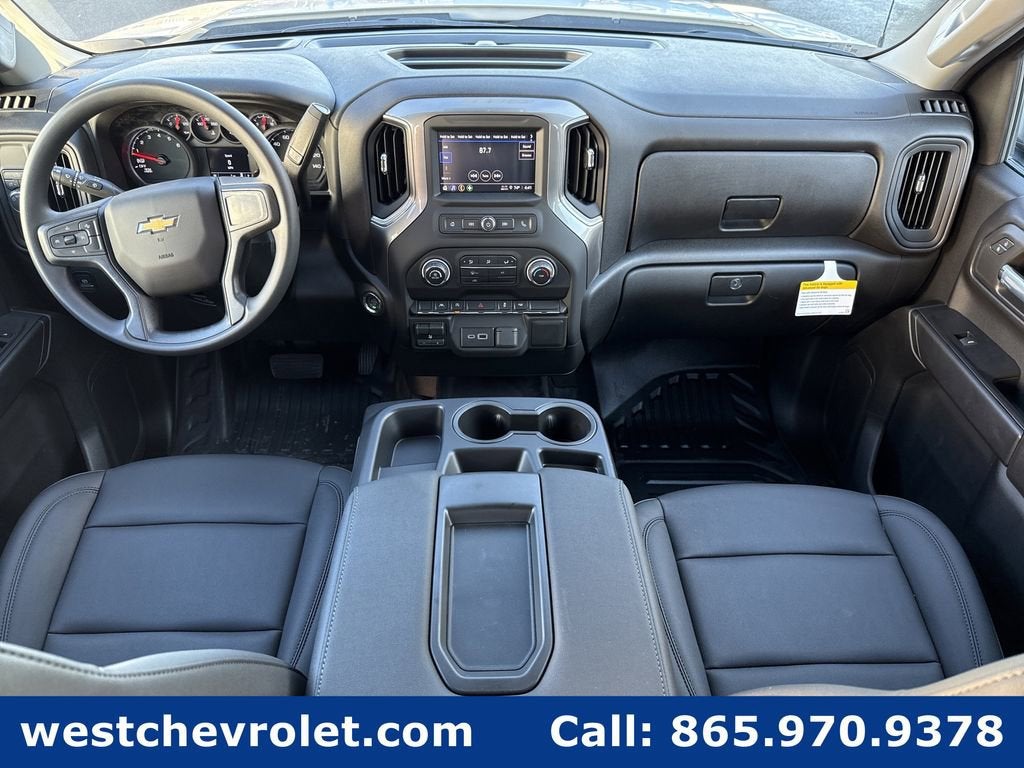 10-Speed Automatic, Jet Black Vinyl, 170 Amp Alternator, 220 Amp Alternator, 3.5 Monochromatic Display Driver Info Center, 4-Way Manual Driver Seat Adjuster, 4-Wheel Disc Brakes, 40/20/40 Front Split-Bench Seat, 6 Speakers, 6-Speaker Audio System, ABS brakes, Air Conditioning, Apple CarPlay/Android Auto, Auto High-beam Headlights, Auto-Locking Rear Differential, Automatic Emergency Braking, Auxiliary External Transmission Oil Cooler, Black (Semi-Gloss) Front Bumper, Black (Semi-Gloss) Rear Bumper, Black Manual Outside Mirrors, Bluetooth® For Phone, Brake assist, Chevytec Spray-on Black Bedliner, Compass, Delay-off headlights, Driver door bin, Dual front impact airbags, Dual front side impact airbags, Electronic Cruise Control, Electronic Stability Control, Emergency communication system: OnStar, External Engine Oil Cooler, Following Distance Indicator, Forward Collision Alert, Front anti-roll bar, Front Center Armrest w/Storage, Front Frame-Mounted Black Recovery Hooks, Front Pedestrian Braking, Front reading lights, Front wheel independent suspension, Fully automatic headlights, HD Rear Vision Camera, Hitch Guidance, Illuminated entry, Inside Rearview Mirror with Tilt, Integrated Trailer Brake Controller, IntelliBeam Automatic High Beam on/Off, Lane Keep Assist with Lane Departure Warning, Locking Tailgate, Low tire pressure warning, Manual Tailgate Function with No EZ Lift, Manual Tilt Wheel Steering Column, Occupant sensing airbag, OnStar Services Capable, Outside temperature display, Overhead airbag, Overhead console, Panic alarm, Passenger door bin, Passenger vanity mirror, Power Front Windows with Driver Express Up/Down, Power Front Windows with Passenger Express Down, Power Rear Windows with Express Down, Power steering, Power windows, Preferred Equipment Group 1WT, Premium audio system: Chevrolet Infotainment 3, Radio data system, Radio: Chevrolet Infotainment 3 System, Rear 60/40 Folding Bench Seat (folds Up), Rear reading lights, Rear step bumper, Remote Keyless Entry, Remote keyless entry, Rubberized-Vinyl Floor Covering, SiriusXM Delete, Solar Absorbing Tinted Glass, Speed control, Speed-sensing steering, Split folding rear seat, Standard Suspension Package, Standard Tailgate, Tachometer, Teen Driver, Tilt steering wheel, Tire Pressure Monitoring System, Traction control, Trailering Package, Trip computer, Variably intermittent wipers, Vinyl Seat Trim, Voltmeter, Wheels: 17 x 8 Ultra Silver Painted Steel, Wi-Fi Hot Spot Capable, 10-Speed Automatic, Jet Black Vinyl.