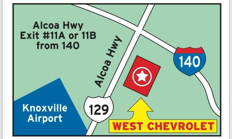 Also, all of our vehicles come with seven pre-paid oil changes. Ask us for the full details. West Chevrolet is located on Alcoa Highway near the Knoxville Airport.